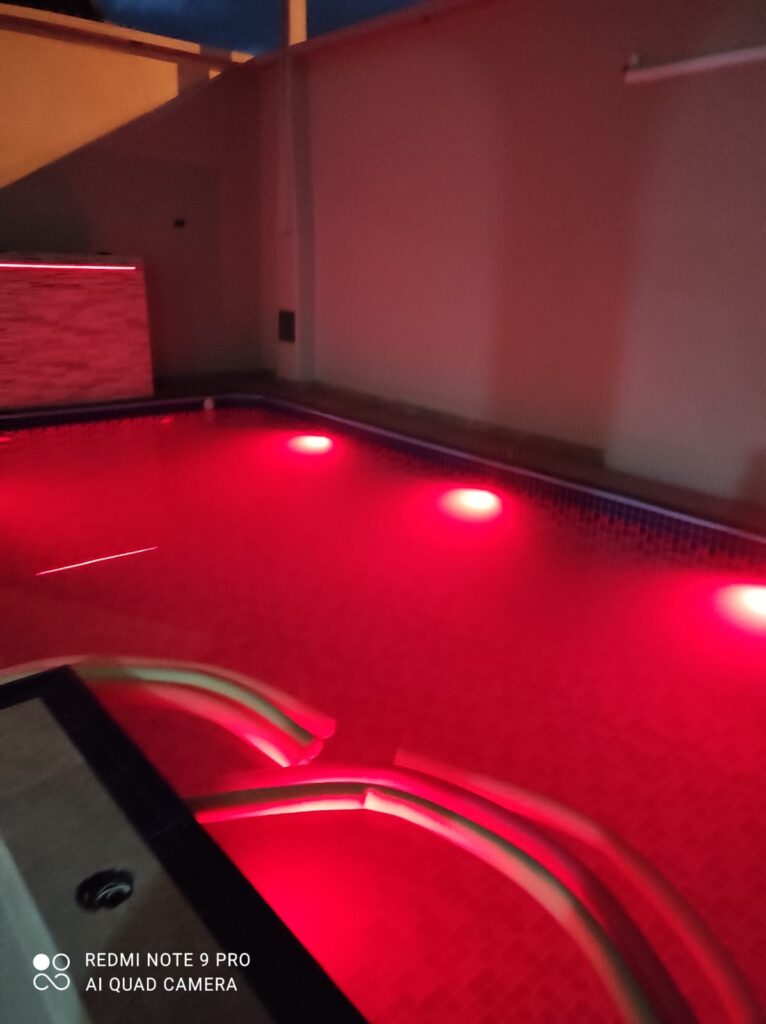 Os refletores LED não são apenas um detalhe estético — são essenciais para quem deseja aproveitar a piscina durante a noite com segurança. Além disso, criam um visual diferenciado, agregam valor ao imóvel e tornam a área de lazer muito mais charmosa e funcional.